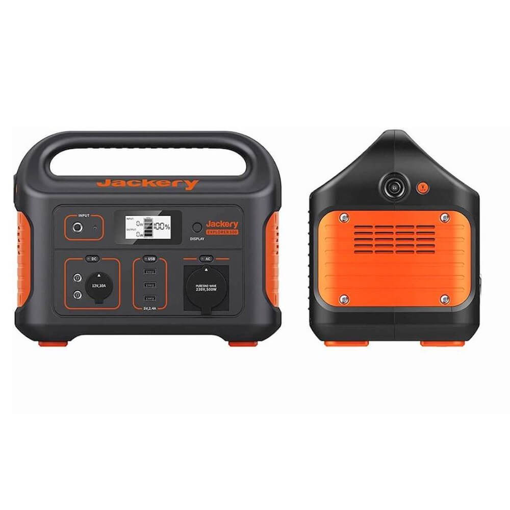 Мощна външна батерия с AC (230V за ел. мрежа), 2 х DC изхода, 3 x USB-A изходи и 120W гнездо за кола - Jackery Explorer 500EU Portable Power Station 500W (черен)