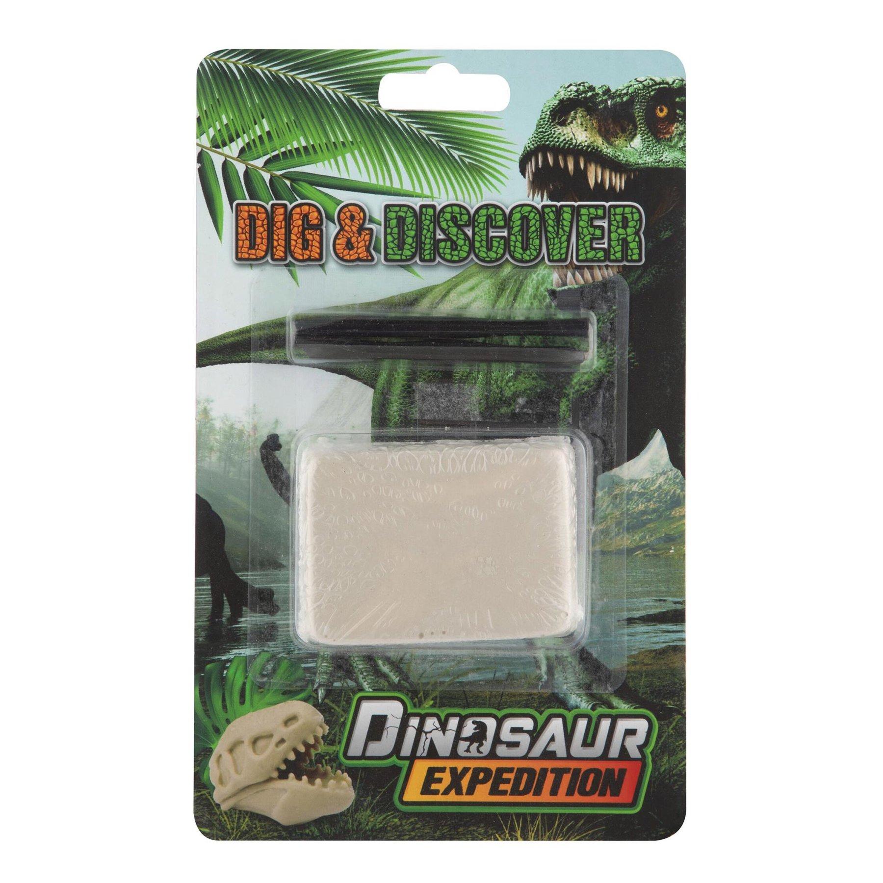 • Включва блок с фосил (яйце или квадратен блок), инструмент за изкопаване и четка за разкриване на скрития фосил.