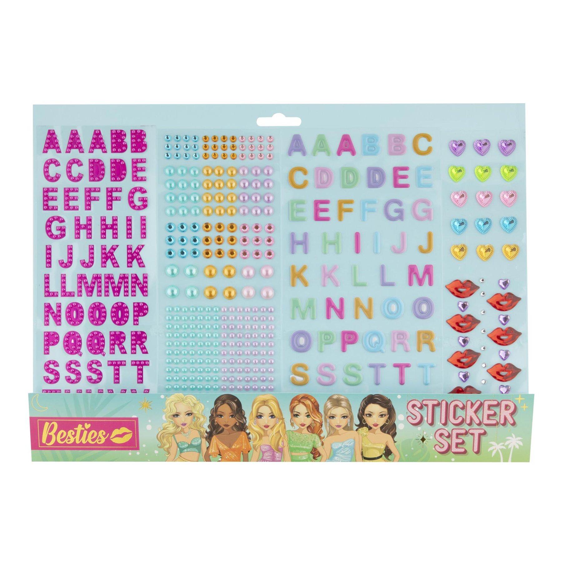 • Включва разнообразни обемни стикери с букви, цветни перли, сърца и декоративни елементи.