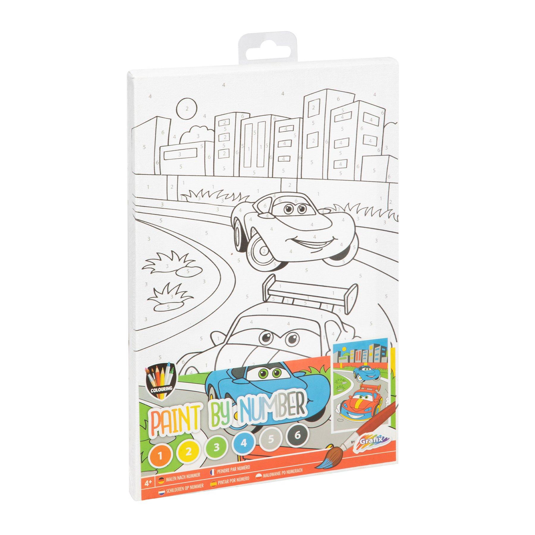 – платно за оцветяване по номера с изображение на коли, размери: 29.7 х 19.5 cm;