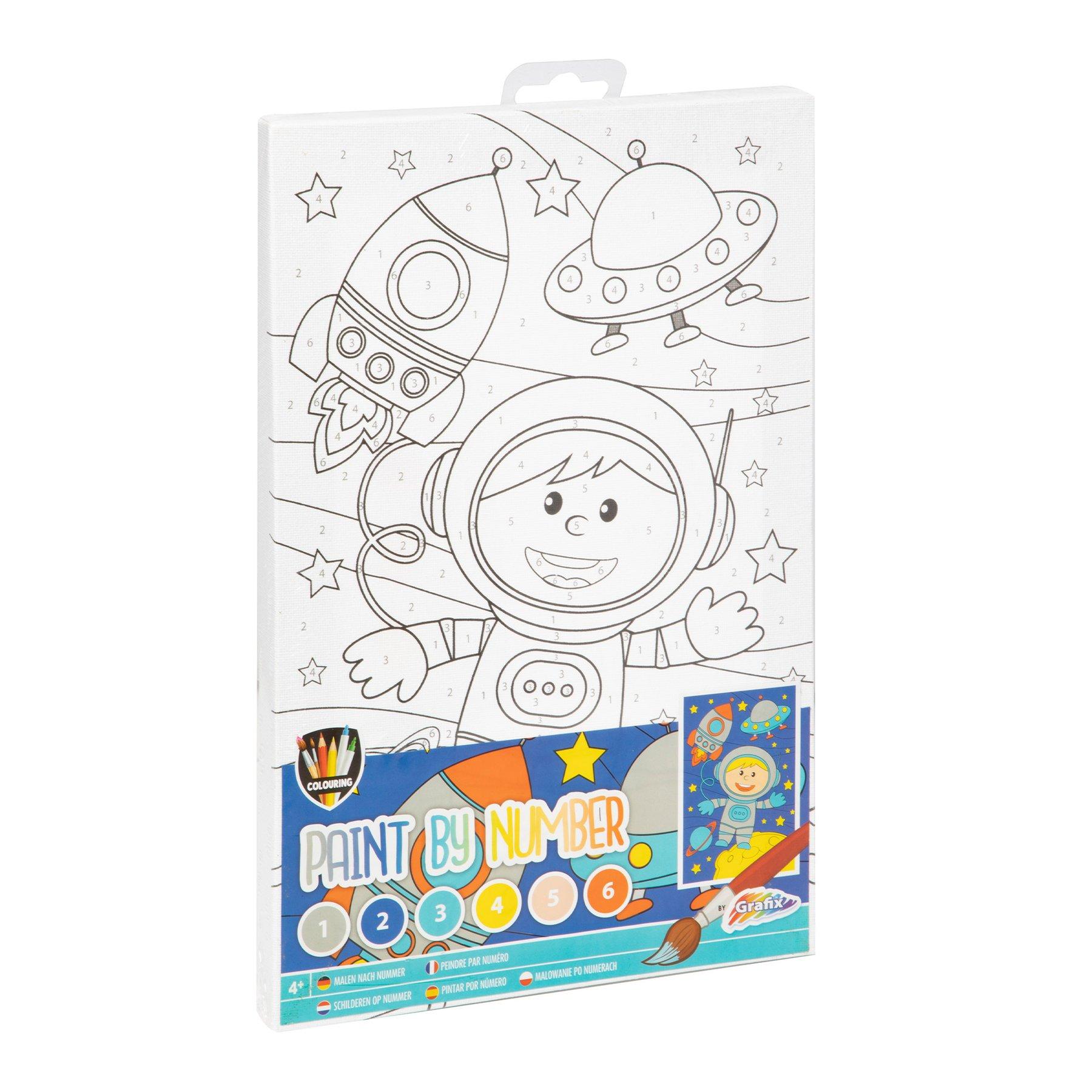 – платно за оцветяване по номера с изображение на космонавт, размери: 29.7 х 19.5 cm;