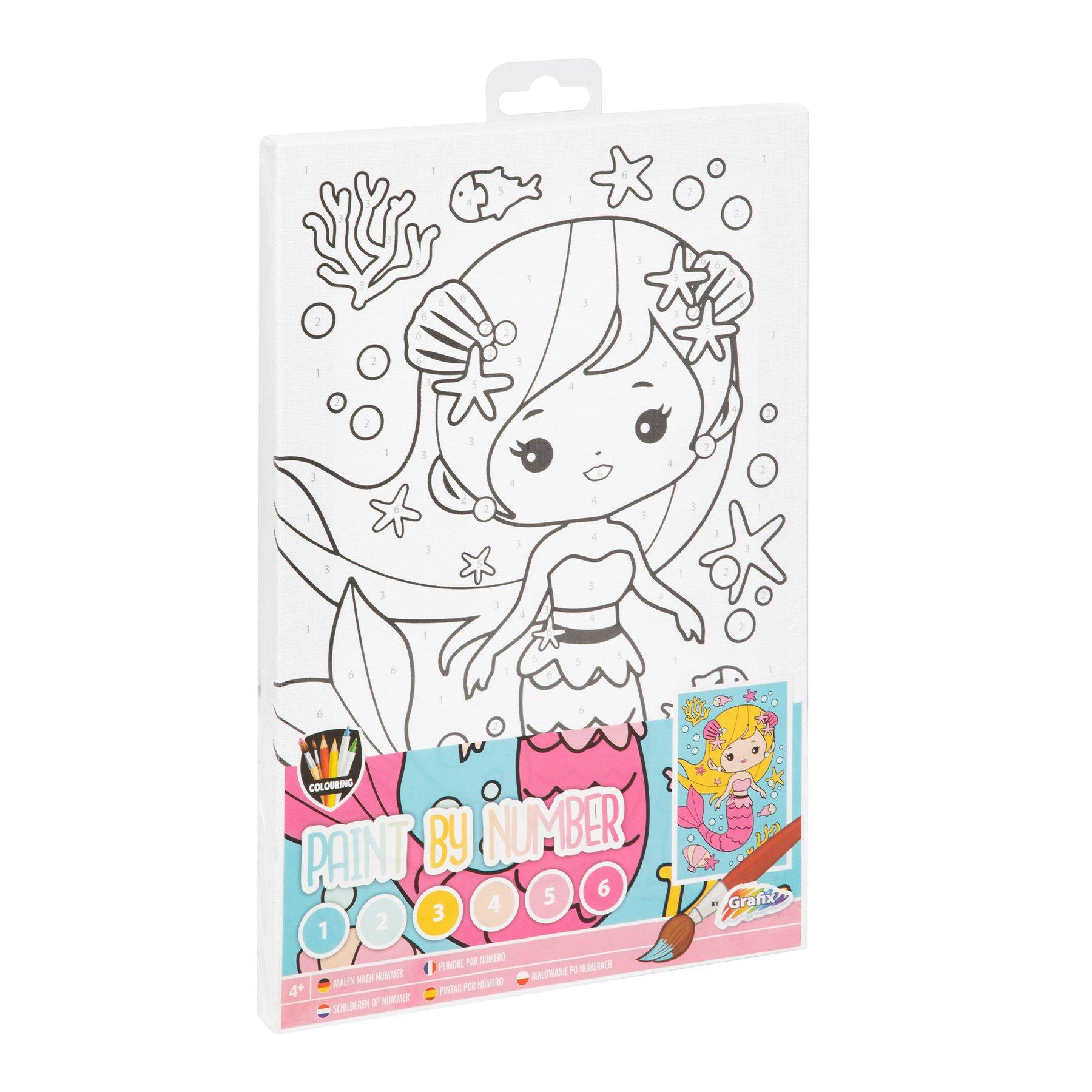 – платно за оцветяване по номера с изображение на русалка, размери: 29.7 х 19.5 cm;