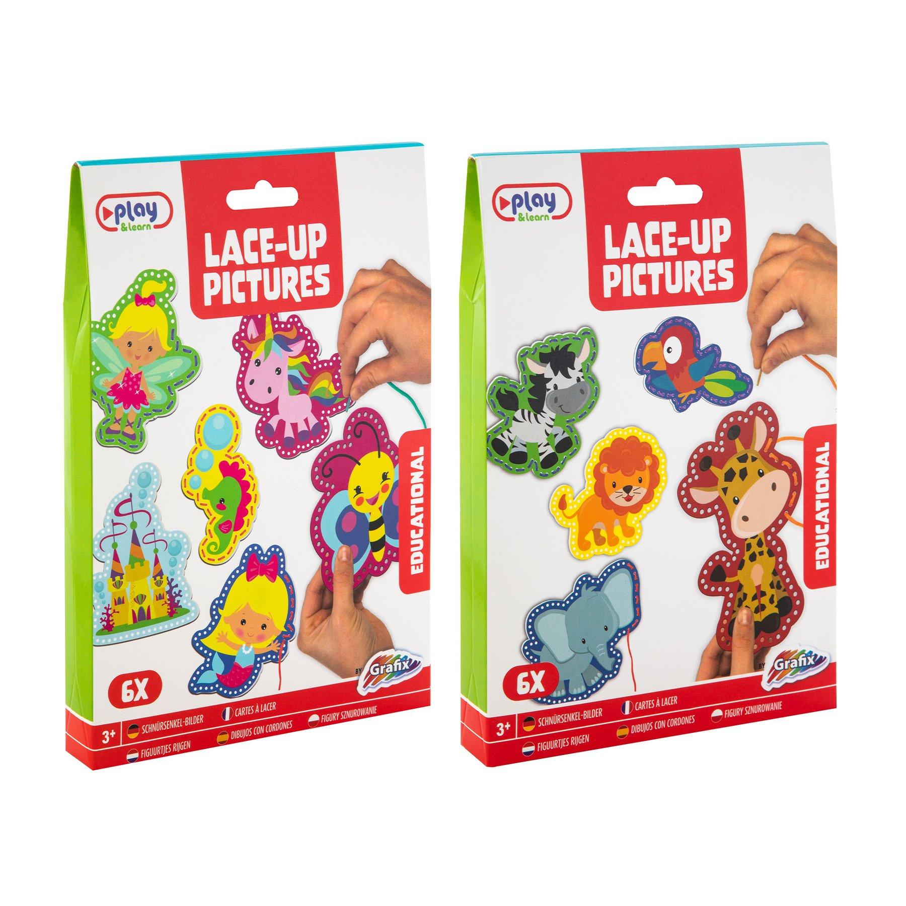 • Всеки комплект включва 6 шаблона, които да доукрасите, нанизвайки в техния край разноцветни конци.