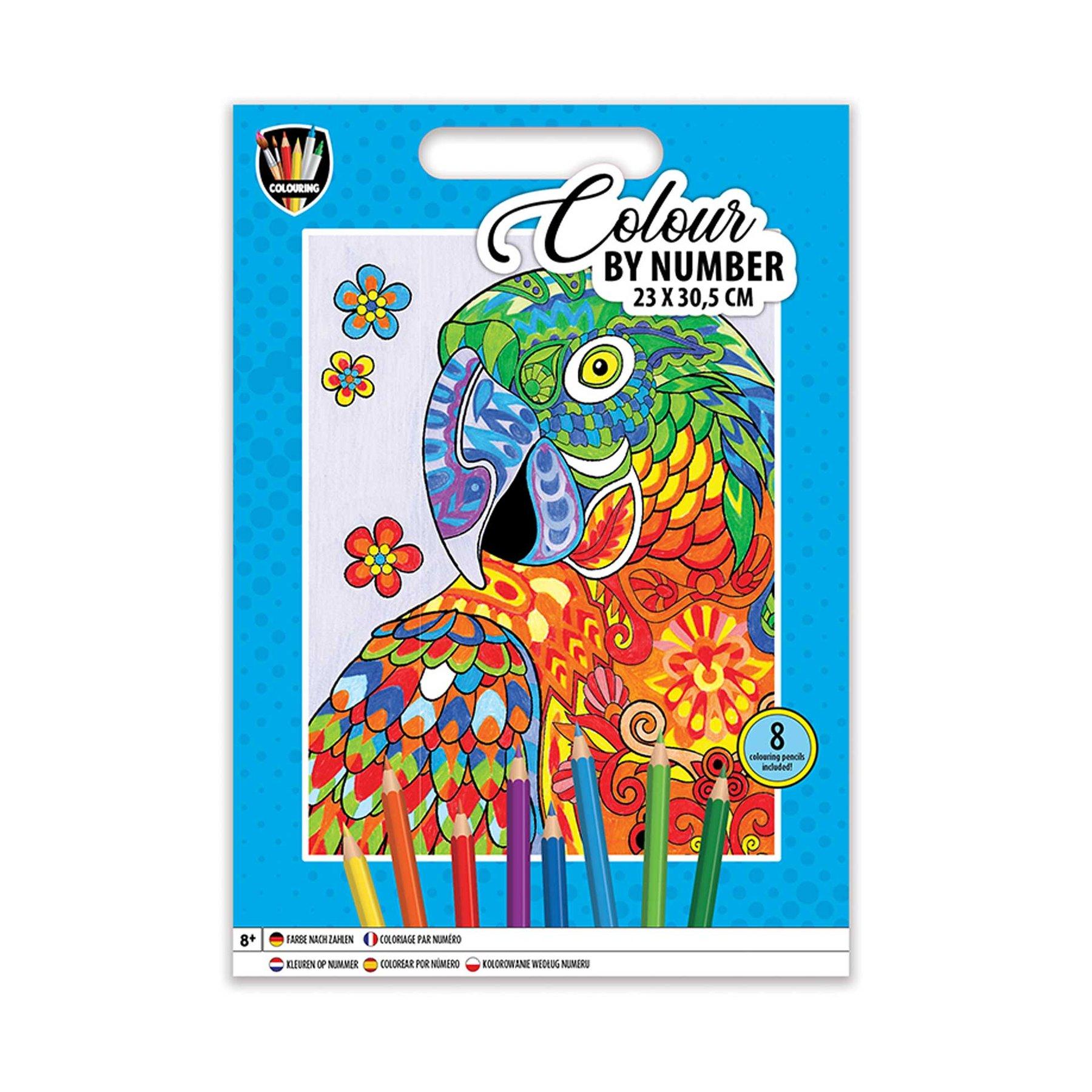 Moxy Рисуване по номера Папагал, 23 х 30.5 cm, с 8 молива