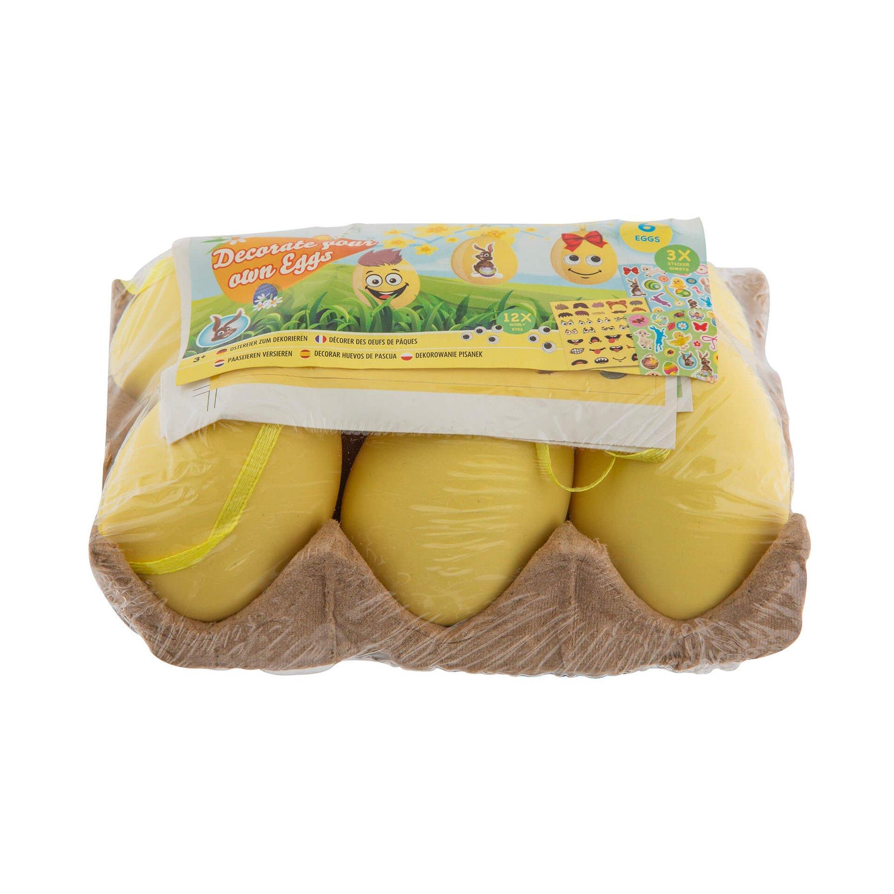 Moxy Яйца за декорация, жълти, 6 броя, с включени стикери и очички