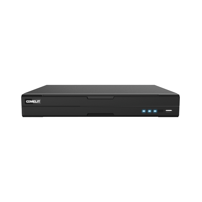 Мрежов видеорекордер за 8 IP канала (8 PoE), съвместим с NDAA. Максимална резолюция 12 MP, видео компресия H.265S/H.265+/H.265/H.264, двойно предаване и пропускателна способност 160 Mbps. Поддържа DVA видео анализ, база данни за лица и регистрационни номера. Управление чрез Comelit CCTV APP и Comelit CCTV Manager. Включва HDD диск 1 TB и захранващ адаптер 48 V.