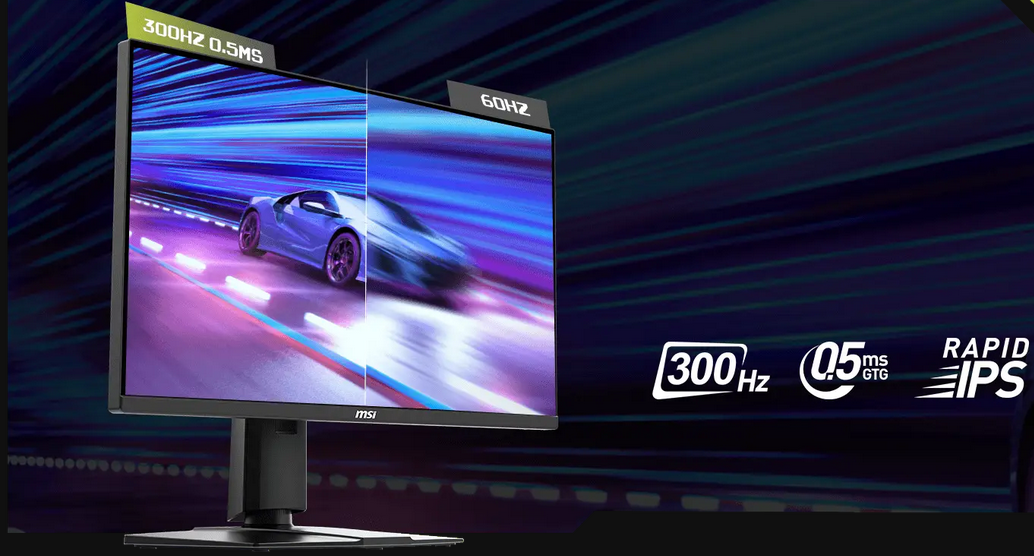 Equipped with a 300Hz refresh rate and 0.5ms (GtG, Min.) response time which has the benefit in fast moving game genres such as first person shooters, fighters, racing sims, real-time strategy, and sports.