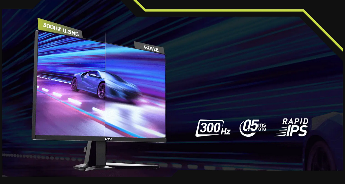 Equipped with a 300Hz refresh rate and 0.5ms (GtG, Min.) response time which has the benefit in fast moving game genres such as first person shooters, fighters, racing sims, real-time strategy, and sports.