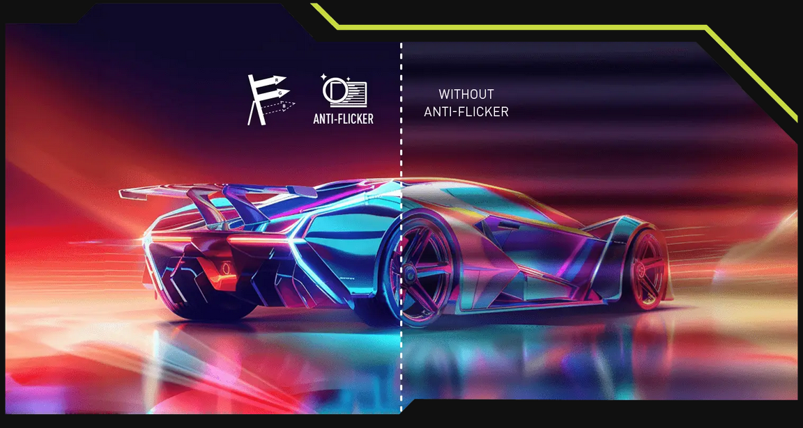 Anti-Flicker and Less Blue Light technologies provide a very comfortable viewing experience by reducing the amount of flicker and displaying lower levels of blue light. You can game for longer periods without experiencing eye fatigue.