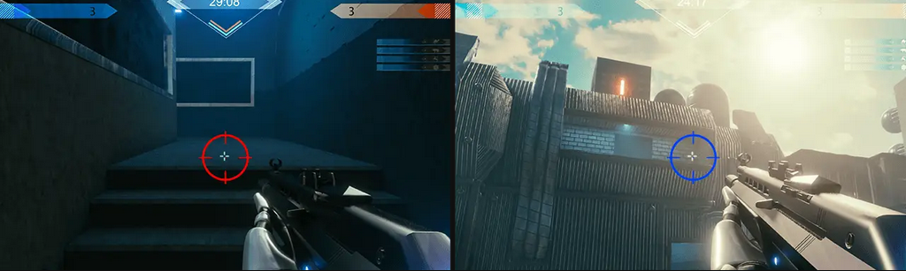 The Aim dot automatically changes color, making it visible at any time. If the color of the aim dot overlaps with the background color, it will be problematic for aiming.