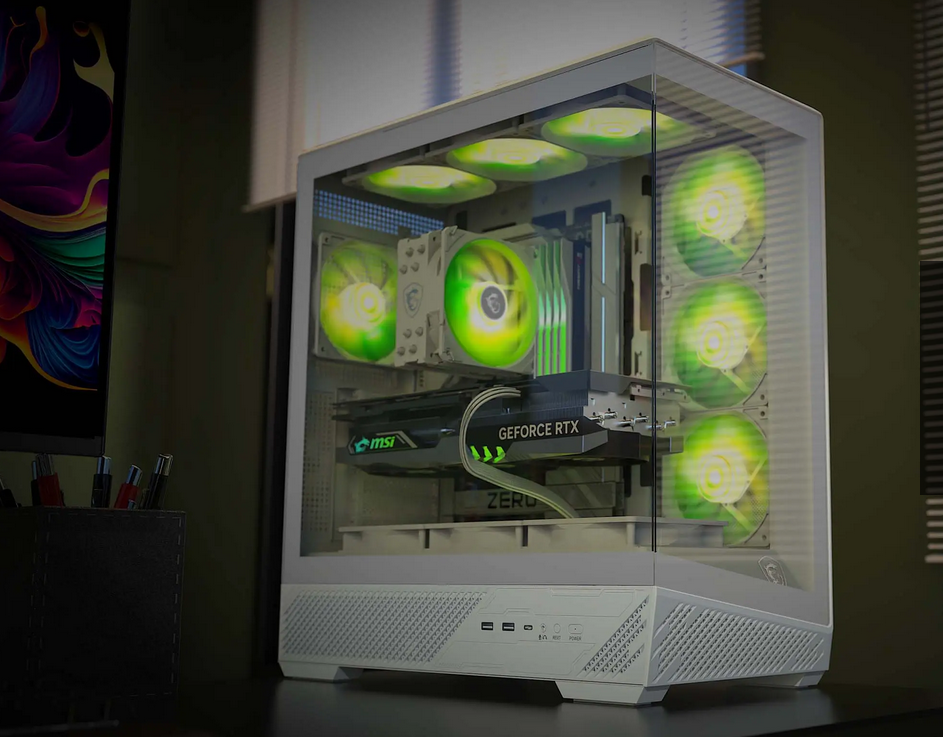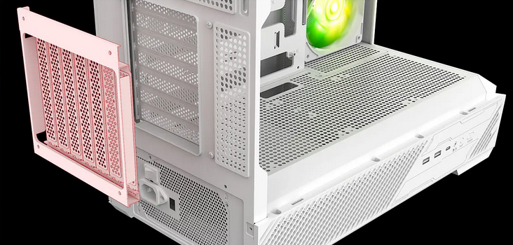 Rotatable GPU Bracket One bracket, two orientations. A quick 90° rotation allows quick switching between horizontal and vertical GPU installations.(Riser cable sold separately) | Built with a unified aesthetic in mind, the design features bold diagonal lines and sharp cut angles—perfectly matching MAG series motherboards, liquid coolers, and power supplies. It brings a cohesive, polished look to your entire PC build. |