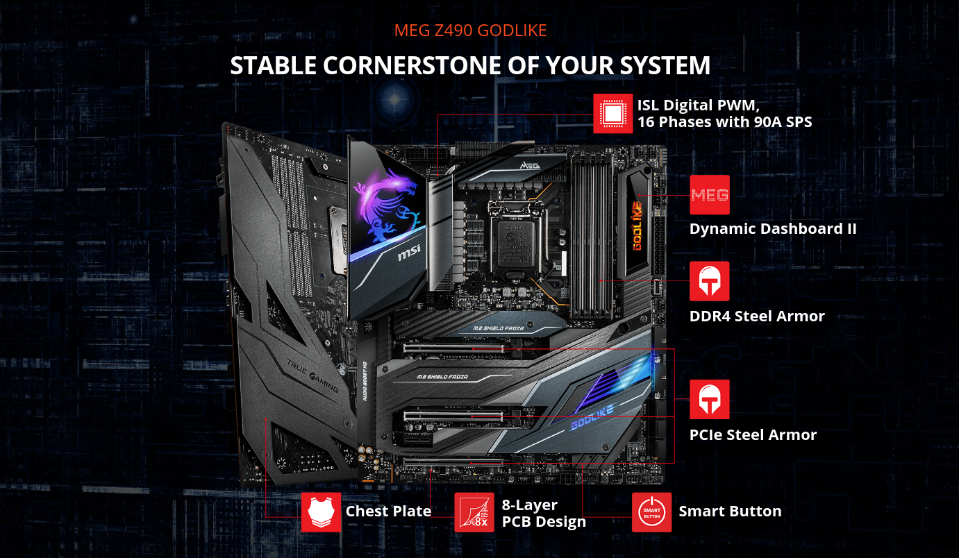 The MEG series seeks to transcend current gaming products, the flagship model designed to push the limits of what an extreme gaming series can be. Combining the strengths of our existing arsenal with new innovative technology; this results in significant improvements in operational and gaming efficiency. With the MEG series, take complete control of performance and personalization with the ultimate gaming series for enthusiasts who want it all.