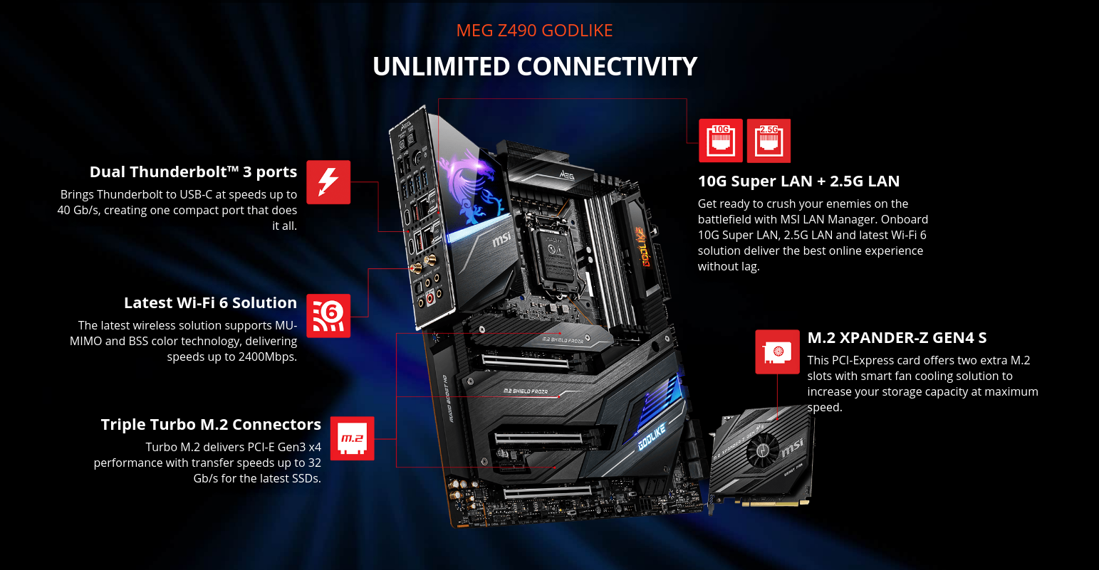 - Latest Network Solution: Onboard 10G Super LAN, 2.5G LAN and latest Wi-Fi 6 solution deliver the best online experience without lag.