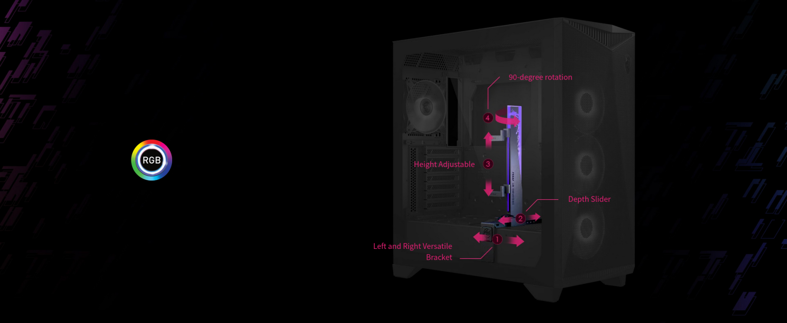 The graphics card stand can be easily adjusted for different graphics card sizes and installation methods without the need for any tools, making it a diy-friendly design that allows for changing the optimal support position effortlessly.