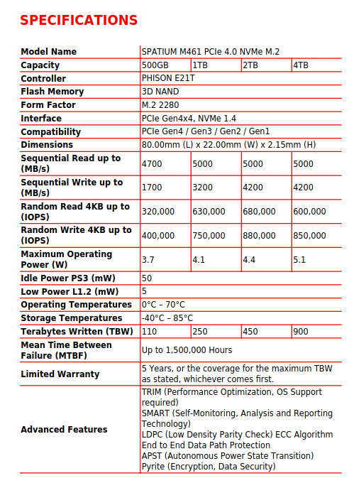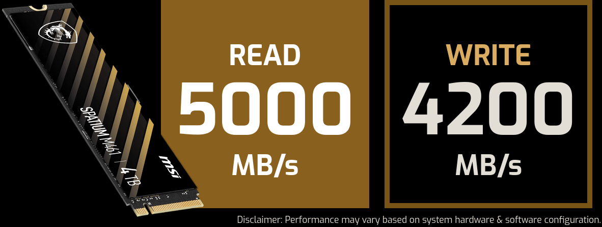 Optimized for the PCIe Gen4 interface, SPATIUM M461 SSD reaches read/write speeds up to 5000/4200 MB/s, allowing for rapid data transfer and shortened game load times.