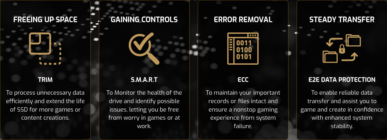 Built-in data security and error-correction capabilities extend the endurance and longevity of the NAND flash storage, empowering you to break records in games or take your talents to the next level.