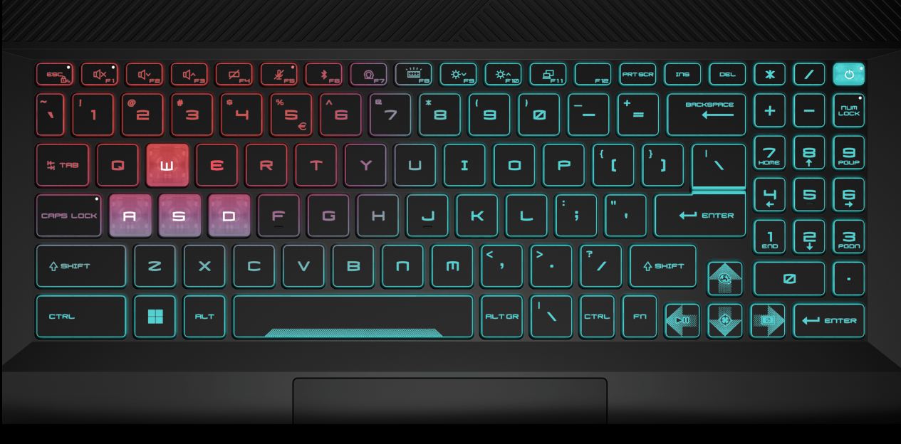 Experience the evolution of gaming laptops with the Sword Series upgraded 24-Zone RGB Keyboard. The translucent WASD keys are immersed in vibrant hues that elevate gameplay. Illuminate your world with style and innovation.