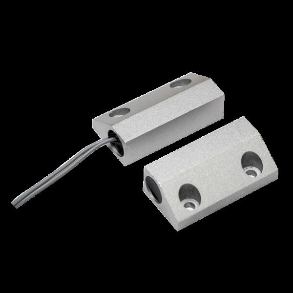 МУК за метални врати, правоъгълен за повърхностен монтаж с винтове. Материал алуминиева сплав, сив. Максимално разстояния на затваряне, GAP: 40~60mm. Размери: 48х15х24.2mm. NC – нормално затворен. Максимален ток 500mA, максимално напрежение 100V. Съпротивление в затворено състояние ~200mΩ. С 430mm кабел.