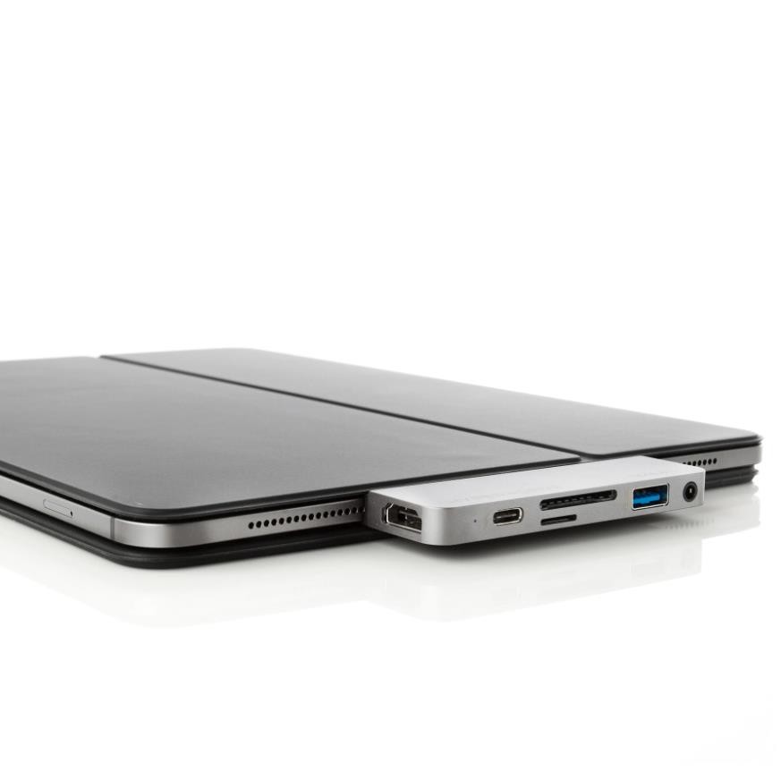 6-в-1 USB-C хъб - превръща една USB-C връзка в 6 порта (3,5 мм аудио жак, USB-A, SD, Micro SD, USB-C, HDMI)