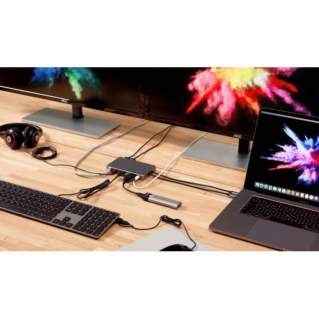 Алуминиева док станция с двоен USB-C кабел за устройства с USB-C или Thunderbolt 3 порт за свързване на допълнителна периферия