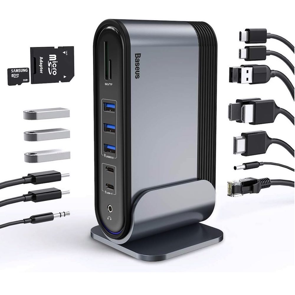 Мултифункционален хъб за свързване на допълнителна периферия за Macbook и USB-C устройства - Baseus UnionJoy Docking Station 17-in-1 USB-C Hub (тъмносив)