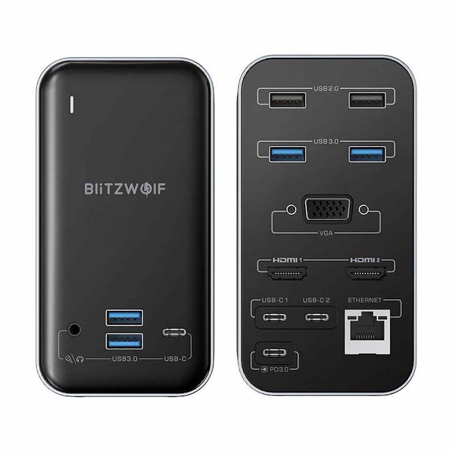 Мултифункционален хъб за свързване на допълнителна периферия за Macbook и USB-C устройства - Blitzwolf Docking Station 15-in-1 USB-C Hub (сив)