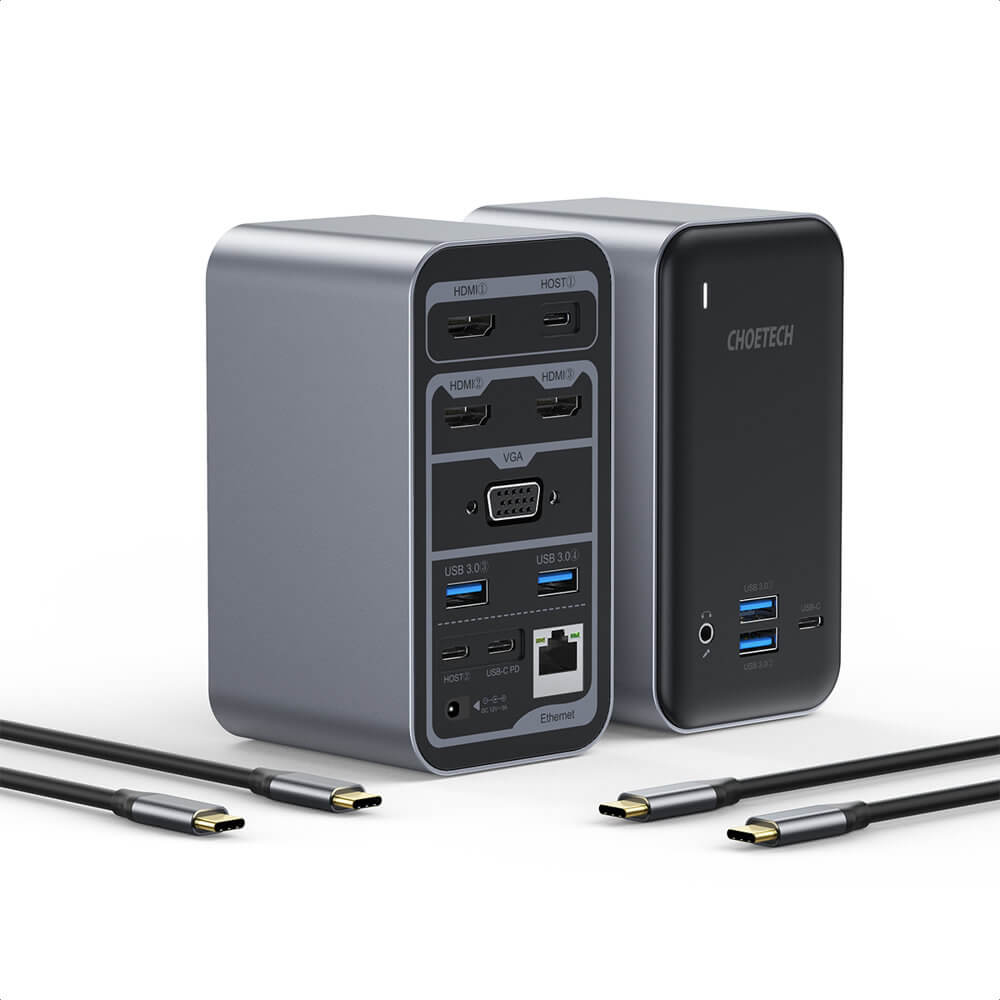 В комплекта: - 1 x Choetech Docking Station 15-in-1 USB-C Hub - 1 х захранване за ел. мрежа - 2 х USB-C към USB-C кабел - 1 х ръководство за употреба