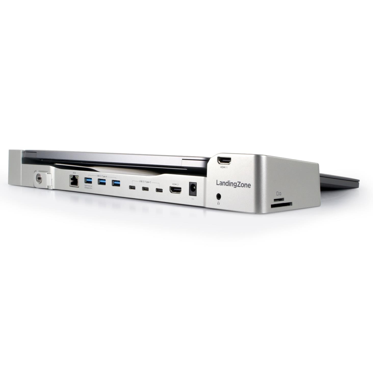 The additional ports, such as USB 3.1 Type-C and Type-A, HDMI, and Ethernet, allow the connection of a large range of devices to the MacBook Air. Additionally, the Kensington Security Slot will allow the use of a laptop lock to secure both the docking station and the MacBook Air.