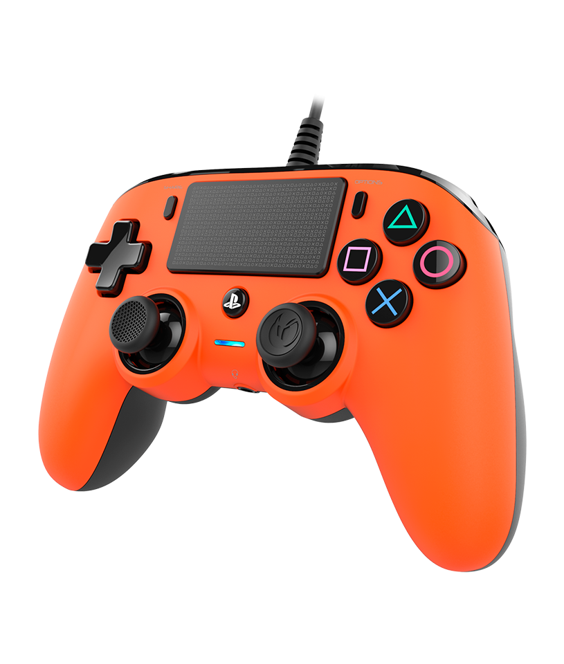 - NACON's Wired Compact Controller is officially licensed for PS4™ consoles and boasts a range of essential features, including a touch pad, vibration motors and an LED player status indicator. It also includes action buttons with PlayStation® symbols and colours, as well as SHARE, OPTIONS and PS buttons.