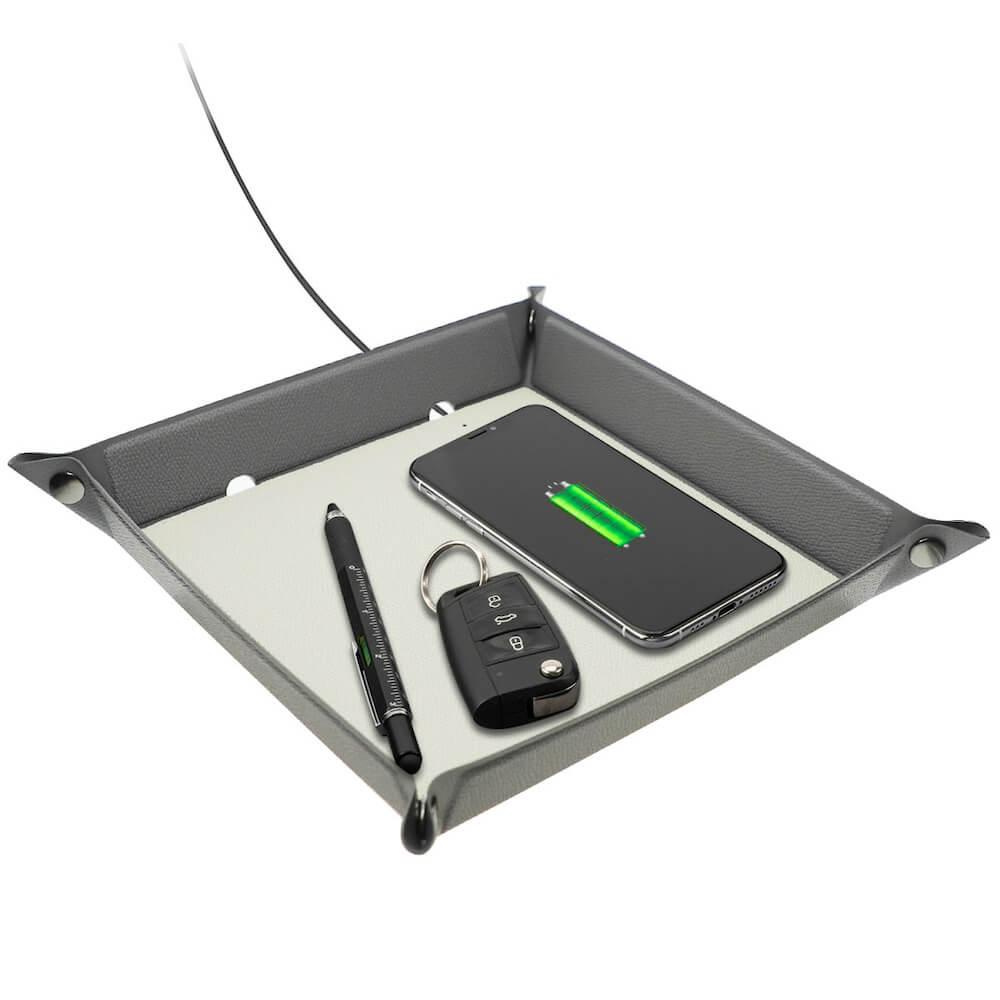 Настолен органайзер с поставка (пад) за безжично зареждане за Qi съвместими устройства - 4smarts Pocket Tray Organizer, 15W (сив)