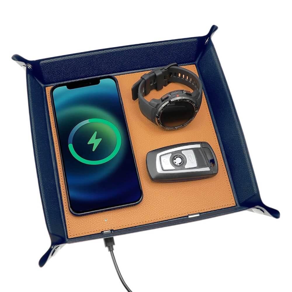 Настолен органайзер с поставка (пад) за безжично зареждане за Qi съвместими устройства - 4smarts Pocket Tray Organizer, 15W (син-оранжев)