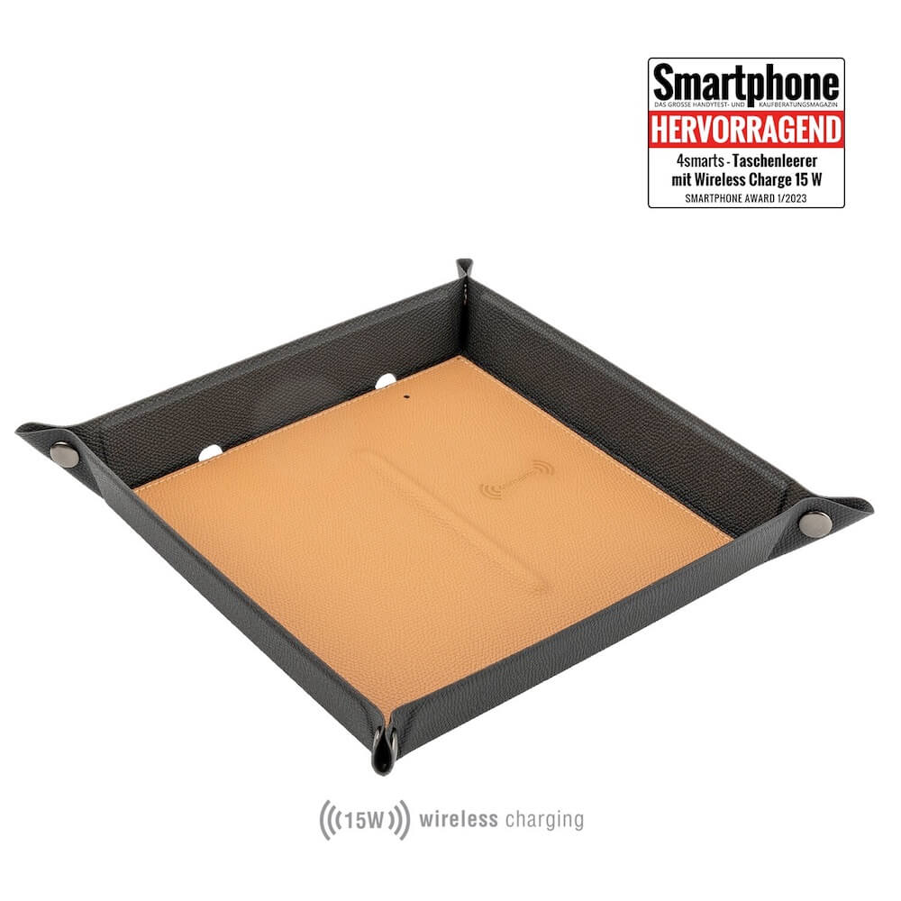 Настолен органайзер с поставка (пад) за безжично зареждане за Qi съвместими устройства - 4smarts Pocket Tray Organizer, 15W (черен-кафяв)