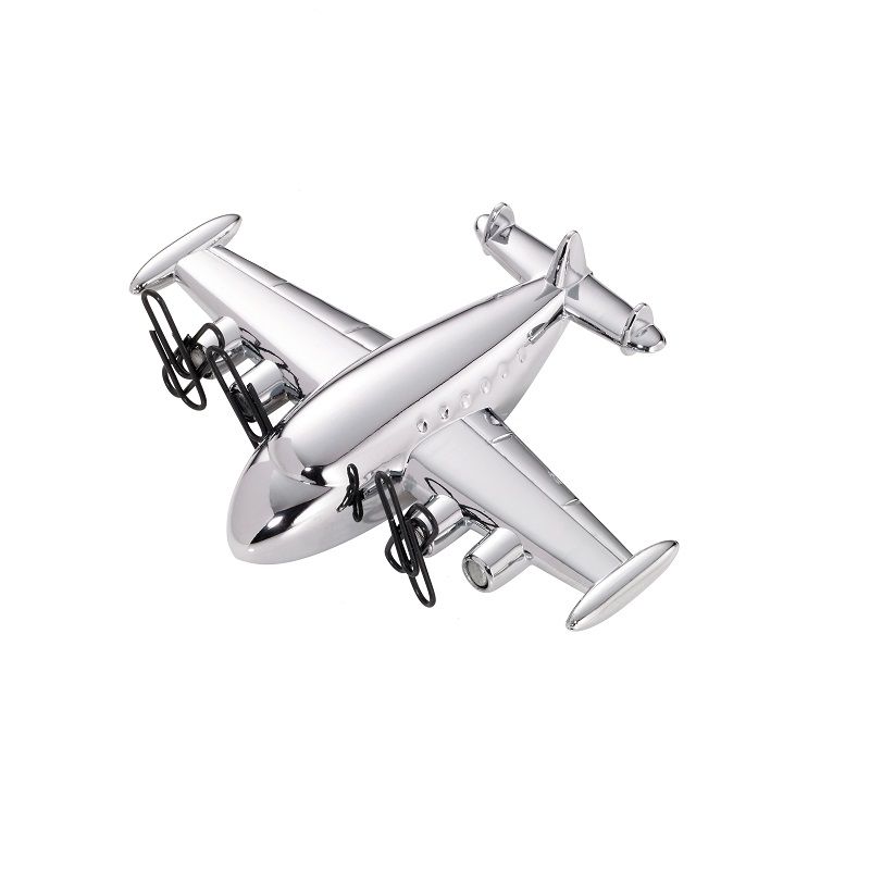 Настолен държач за кламери във формата на самолет. Преспапие с магнит за кламери, включва 5 кламера, с пружинен мотор, полиран хром.