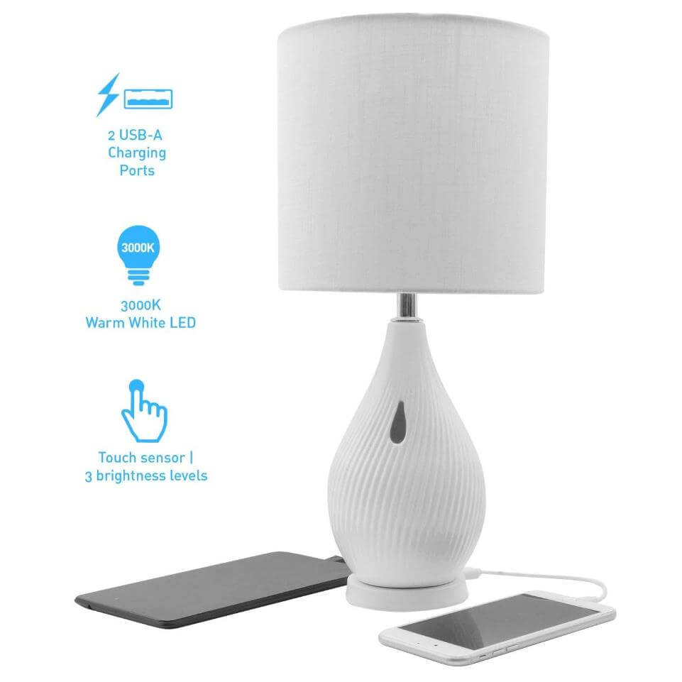 Настолна LED лампа с 2 х USB-A изхода за зареждане на мобилни устройства - Macally Ceramic LED Table Lamp (бял)
