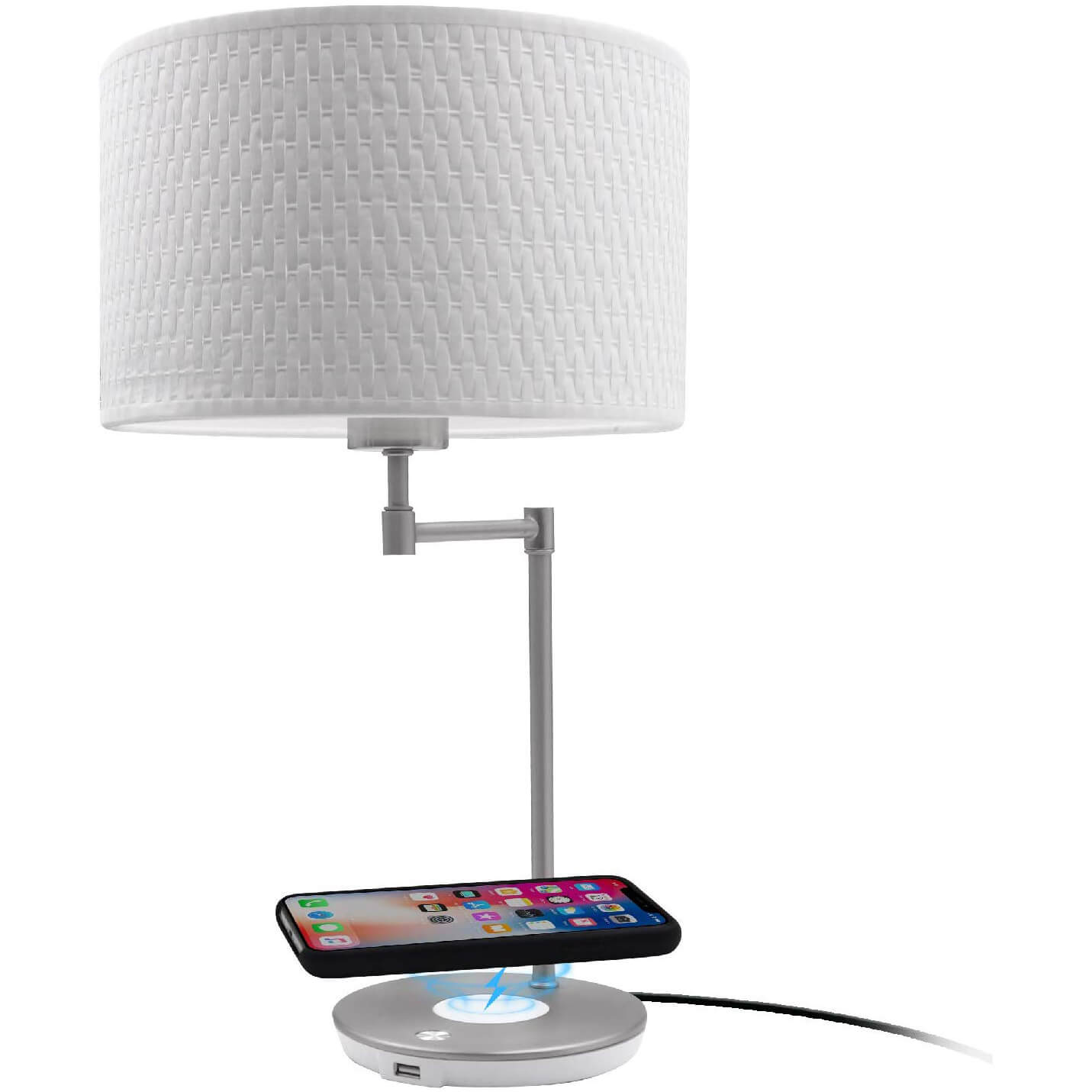 Настолна LED лампа с Qi безжично зареждане х USB-A изход за зареждане на мобилни устройства - Macally Table LED Table Lamp