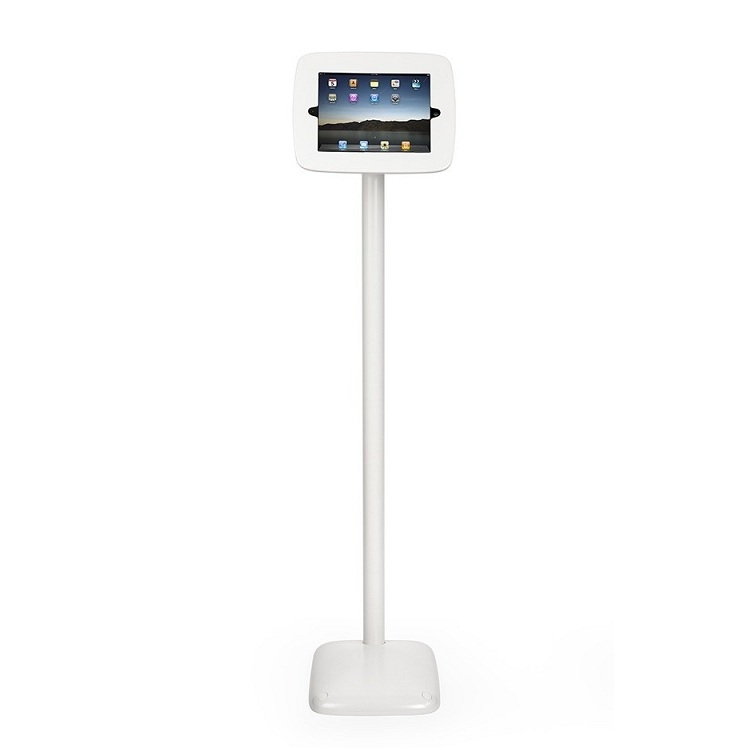 Корпусът на Kiosk предпазва всички изходи и входове на вашия таблет. Захранването е подсигурено като е внедрено в самата поставка, която е изработена от стомана. Основата на поставката се може да се закрепи към пода чрез скрити винтове