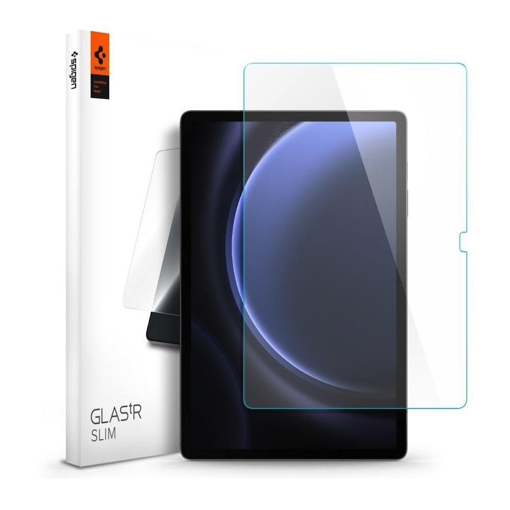 Най-висок клас стъклено защитно покритие за дисплея на Samsung Galaxy Tab S9 FE Plus - Spigen Oleophobic Coated Tempered Glass GLAS.tR SLIM (прозрачно)