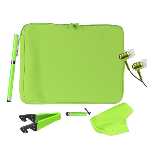 Комплект универсални аксесоари за таблети - неопренов калъф (за таблети до 10 инча), поставка, слушалки, два стайлуса и микрофибърна кърпичка