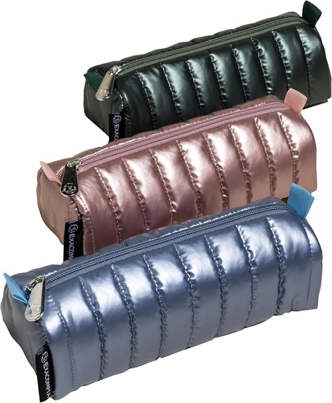 Несесер EXACOMPTA, подплатен, с цип, 22х8.5х7 см, металикови цветове - син, розов, зелен