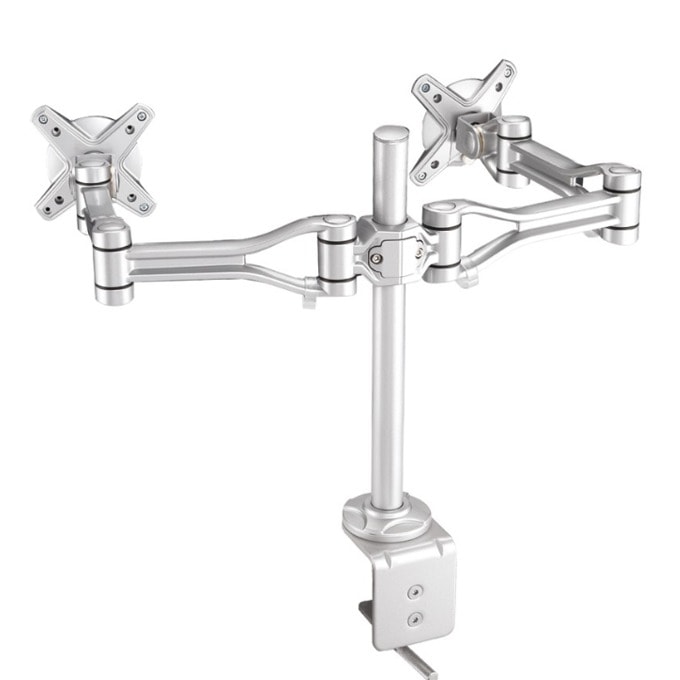 NewStar FPMA-D1030D has three pivot points and is suitable for screens up to 24" (61 cm). The weight capacity of this product is 8 kg each screen. The desk mount is suitable for screens that meet VESA hole pattern 75x75 or 100x100mm. Different hole patterns can be covered using NewStar VESA adapter plates.
