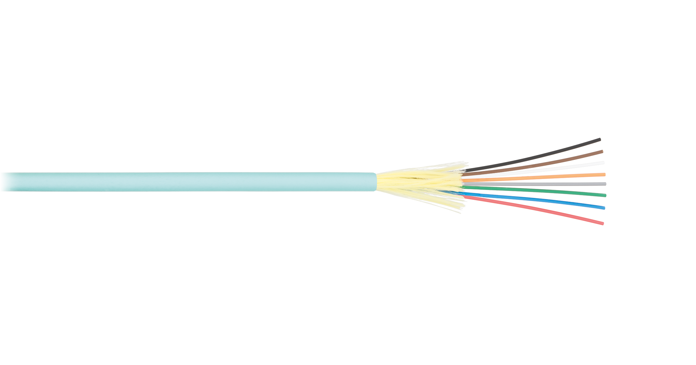 NIKOMAX Оптичен кабел 4 влакна мулти мод 50 um, OM3 - за приложение в сгради; Class Eca, LSZH, аква цвят; максимална издържливост на опън 440N; кевларени нишки; Tight buffer диаметър 900±25 μm; диаметър на кабела 4.8/5.5/6.5/7.8 ± 0.2 mm; минимален радиаус на огъване 80 mm; сила на разрушаване 100 N/CM; плътност на кабела 18.0 kg/km; стандарт ISO / IEC 11801 OM3; работна температура -20 to +70 ° C; дървен барабан 600x478 mm; гаранционен срок 5 години компонентна / 25 години системна гаранция; Цена за метър.