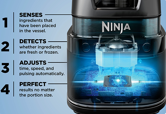 Усъвършенствана технология BlendSense Блендерът Ninja Detect Power Blender Pro с технология BlendSense ви позволява да добавите всяка съставка, да завъртите регулатора и да я гледате как се превръща в перфектно гладко смути. Това е блендерът, който автоматично регулира скоростта и времето за безупречни резултати, дори когато използвате замразени съставки. | ![]() |