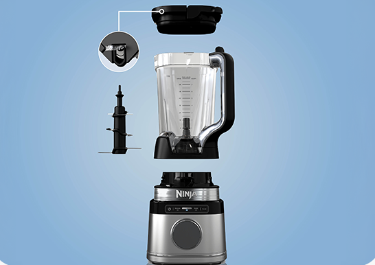 Капак на купата; Режещ блок Ninja Detect Total Crush (за смачкване); Купа с вместимост 2.1 л; Основа - мотор;