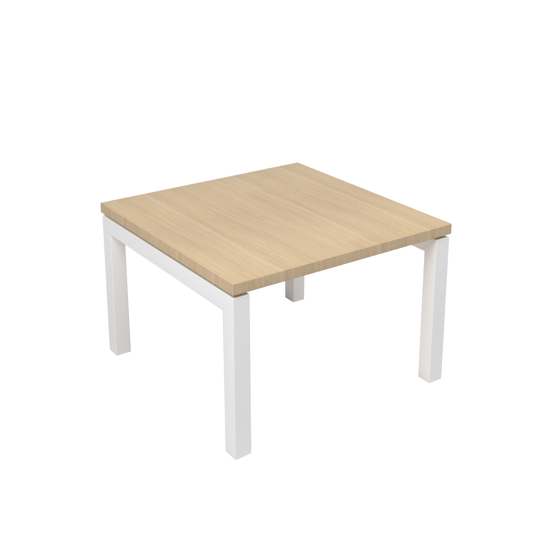 Ниска маса Narbutas Nova, 600 x 600 x 400 mm, квадратен плот, ПДЧ, меламин избелен дъб, бял метал, крак тип U
