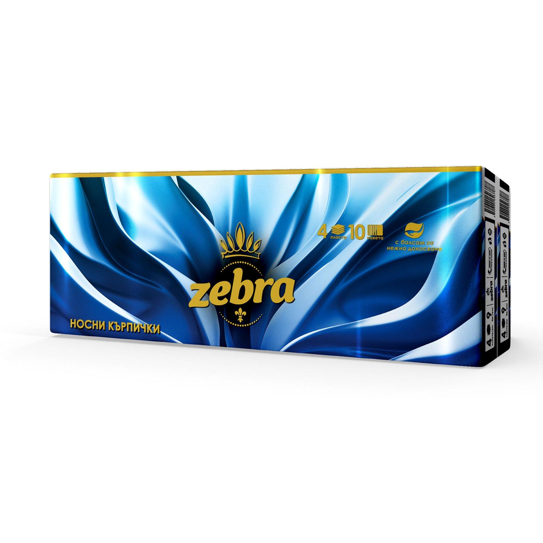 Носни кърпи Zebra, четирипластови, 21 х 21 cm, 10 броя