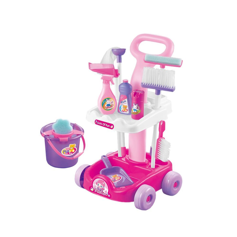 • Комплектът с принадлежности за почистване е количка с всички необходими приспособления за малките деца.