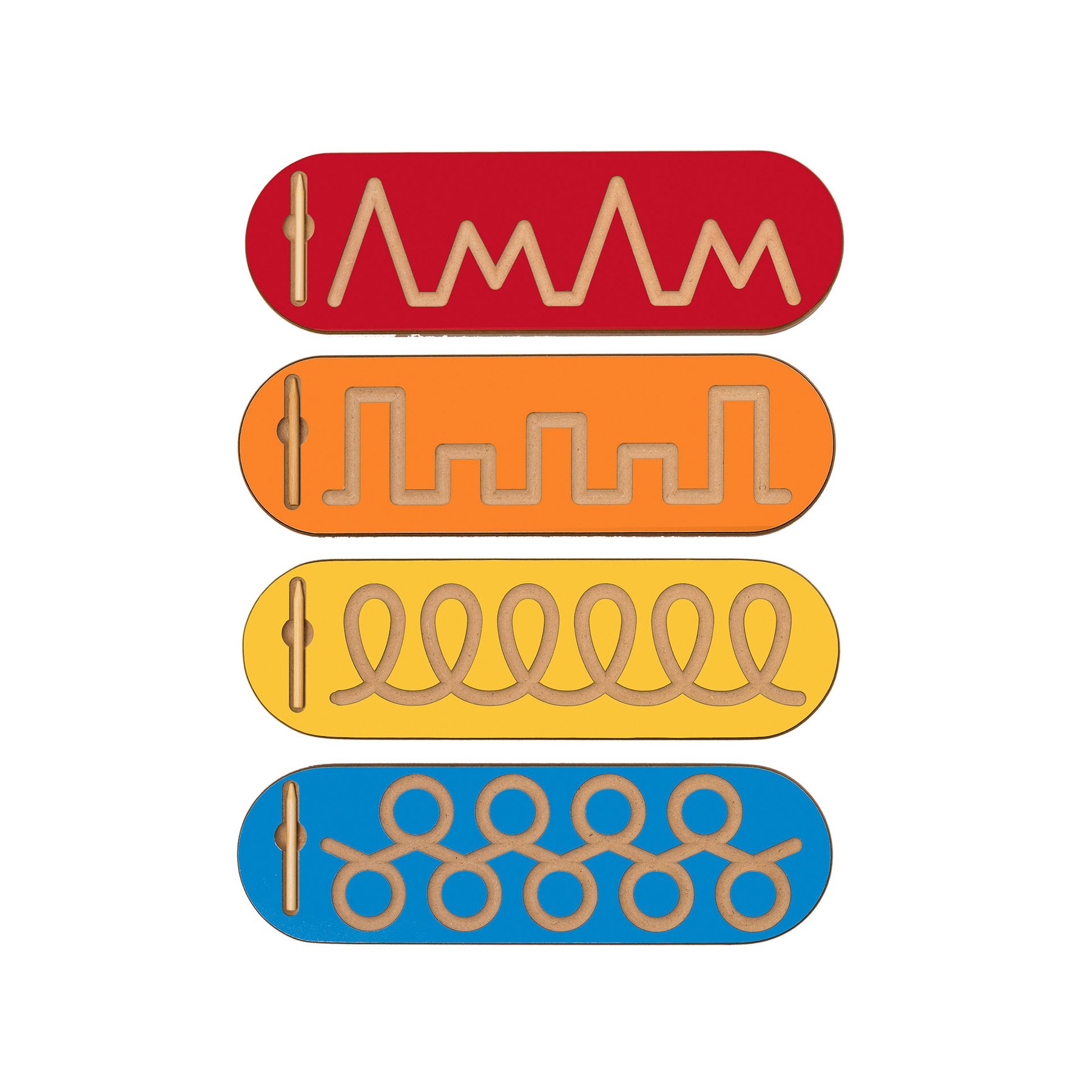 Комплект от 4 дървени манипулативни дъски, които насърчават фината моторика и двигателни умения при децата.