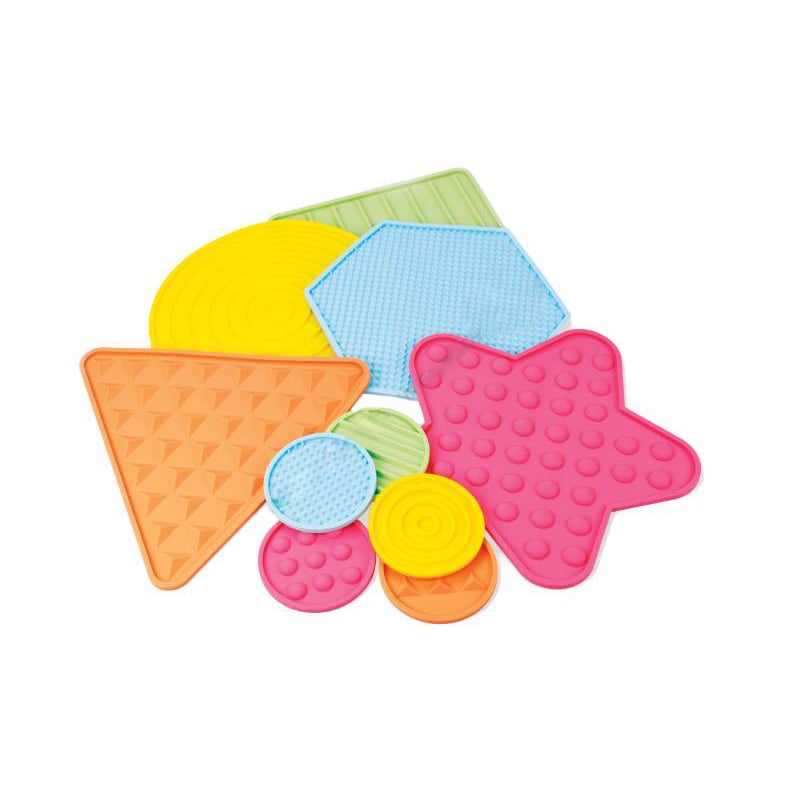 • Комплект от сензорни постелки за терапия или игра в пет форми и два размера.