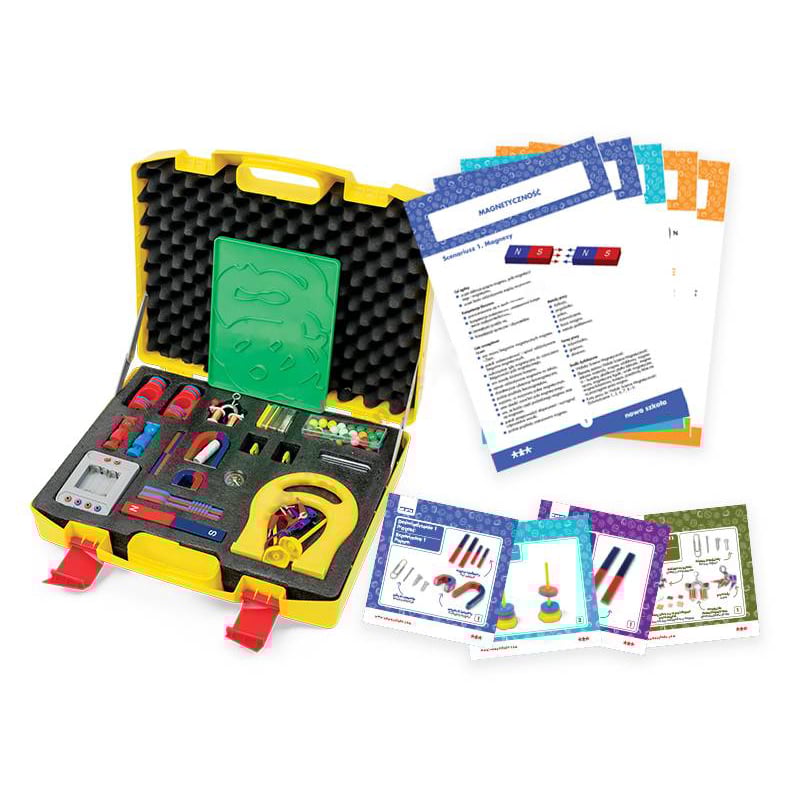 • Съдържанието на куфарчето позволява на учениците да провеждат прости експерименти в областта на магнетизма.
