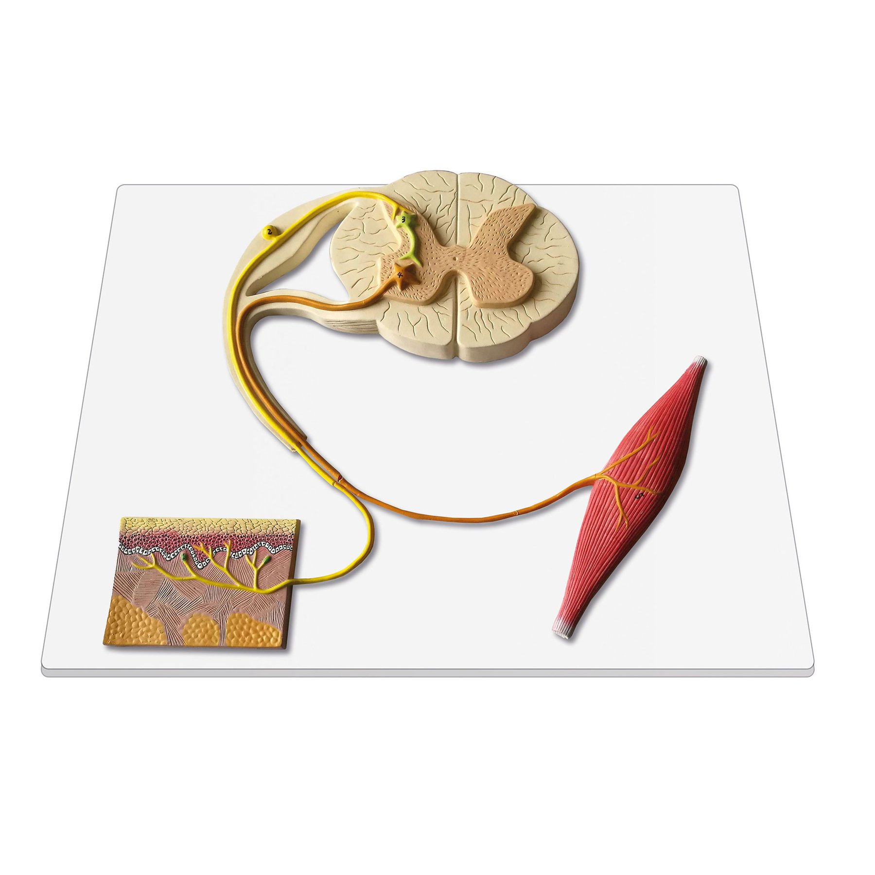• Моделът показва работата на рецептора, сензорния неврон, моторния неврон и ефектора.
